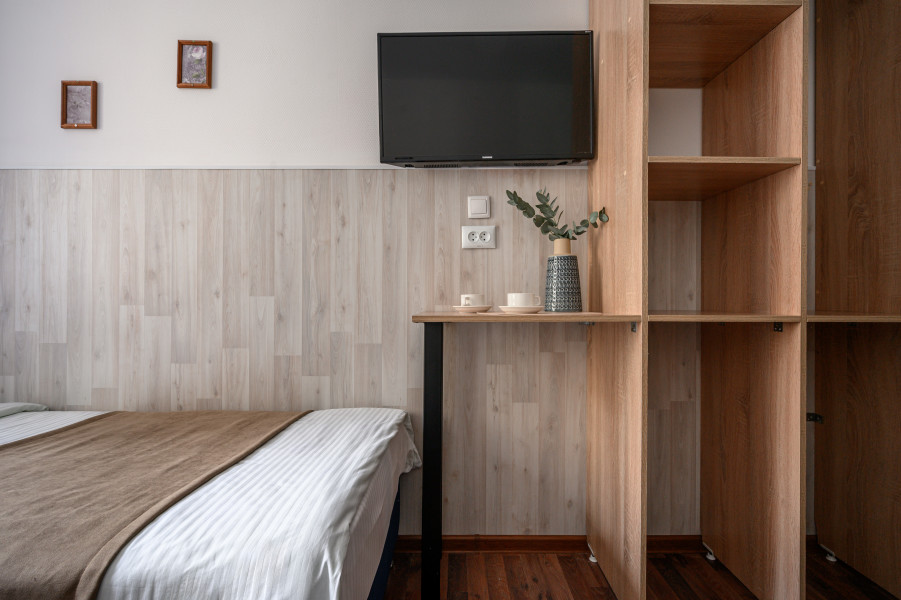| Стандартный 1-местный | кв.м. | 1 чел. | Мебель (кровать односпальная, прикроватная тумбочка, стол), Оборудование (телевизор), Санузел (с душ... | |