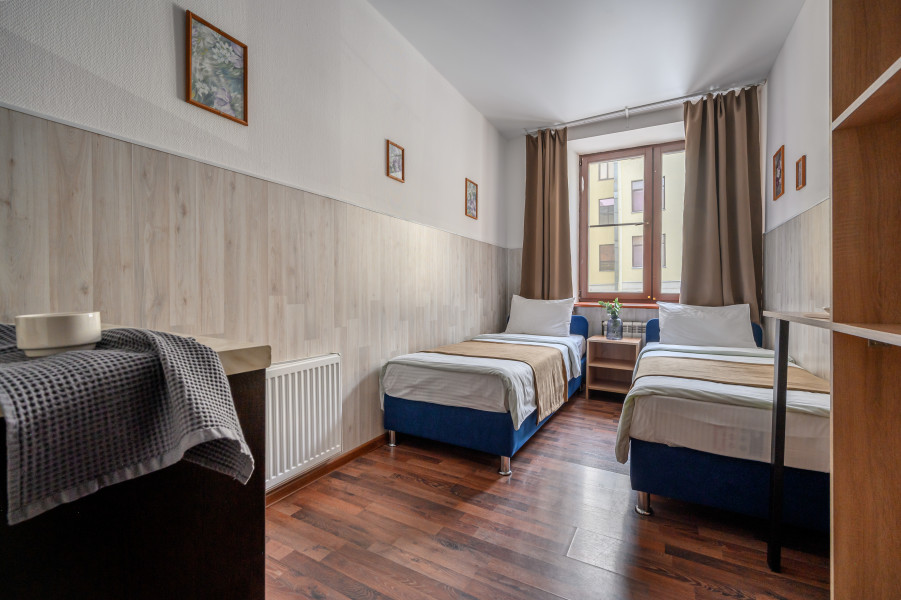 - Мебель: кровать односпальная, прикроватная тумбочка, стол