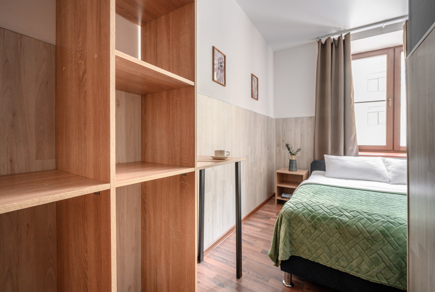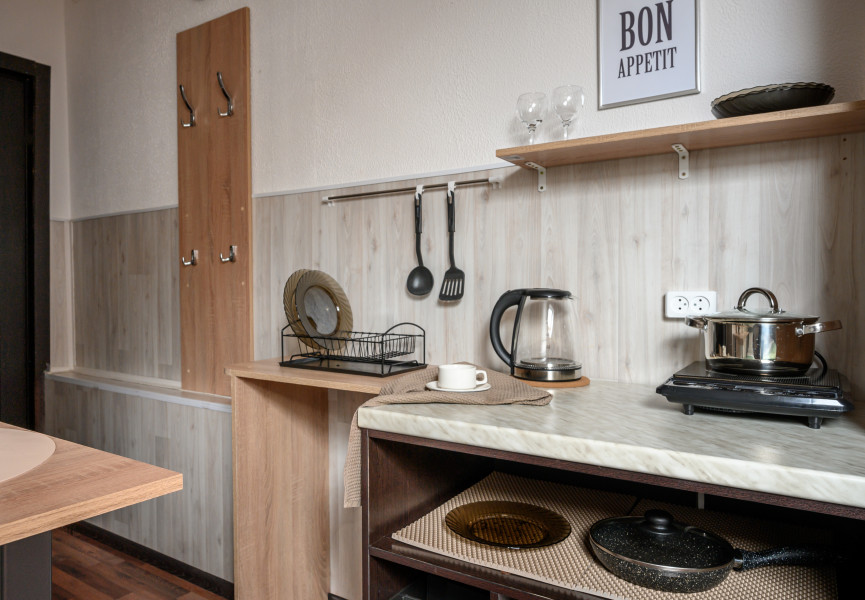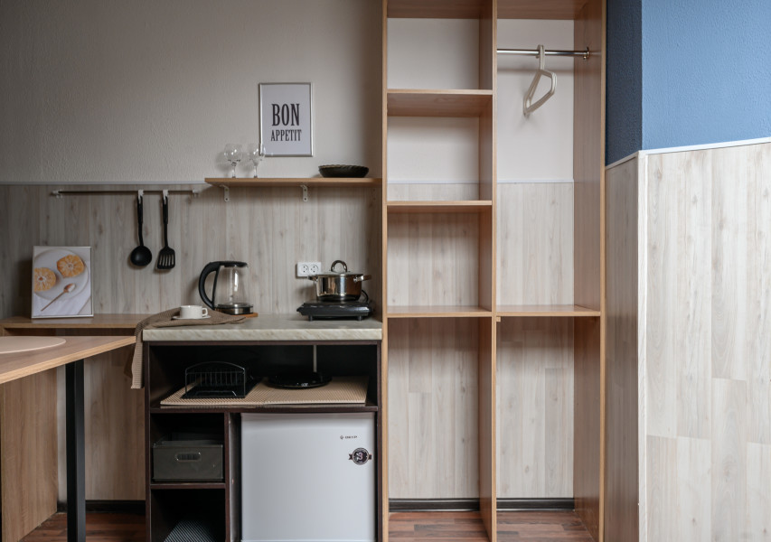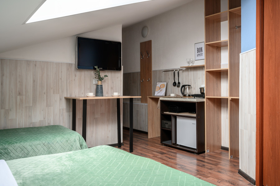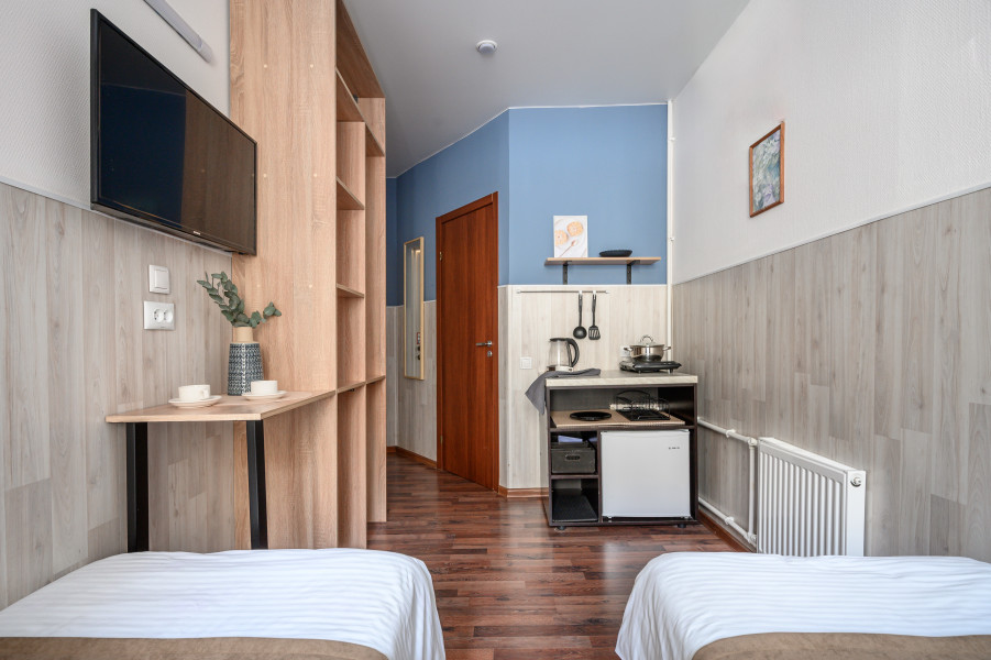 | Стандартный 2-местный с мини-кухней | кв.м. | 2 чел. | Мебель (кровати односпальные /одна двуспальная кровать, прикроватная тумбочка, стол, шкаф), Мини-кух... | |